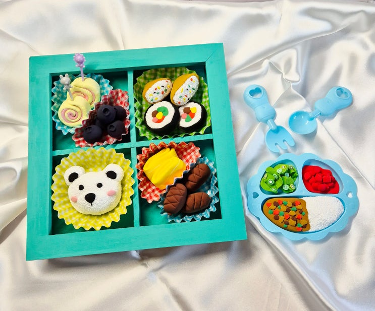 클레이와 볼클레이로 만든 도시락 액자 입니다. 먼저 액자를 색칠해요. 80분 안에 끝내려면 테두리만 색칠...