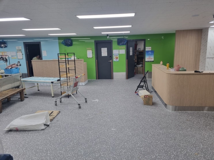 병원데코타일 송탄병원 짐있는 상태에서도 깔끔하게 시공완료