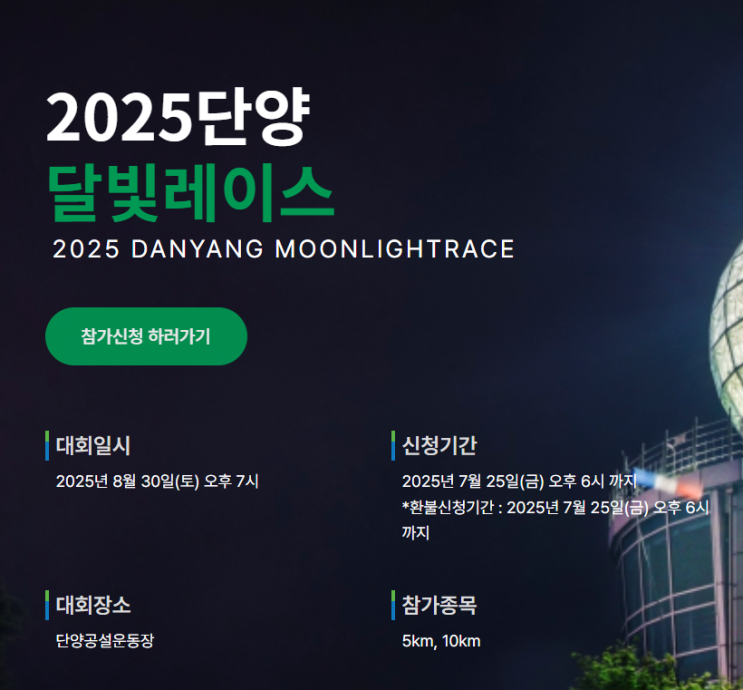 2025 단양 달빛레이스 8월 저녁 단양군 일대를 달리는 마라톤 대회 접수 시작