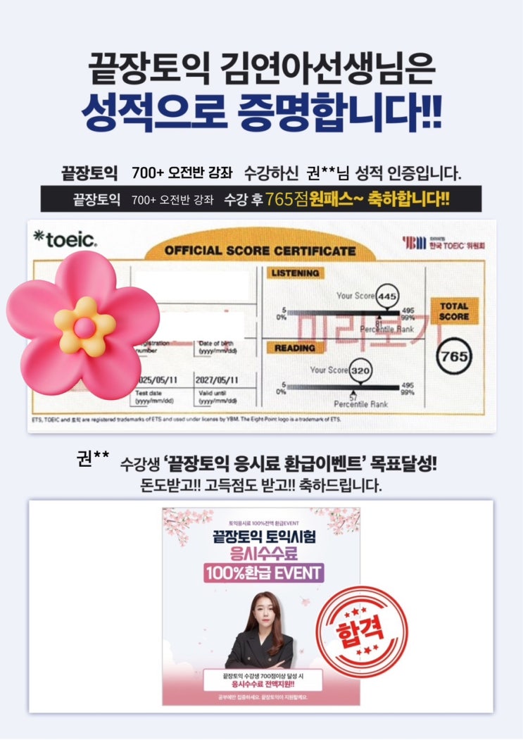 주안토익학원 끝장토익 기초부터 765점 달성까지 후기