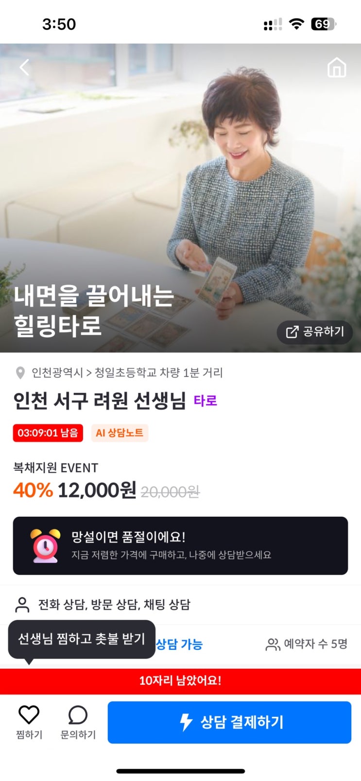 프리미엄 점술 상담 앱 천명, 인천 서구 려원 선생님(인천 타로 잘 보는 곳, 전화 타로)