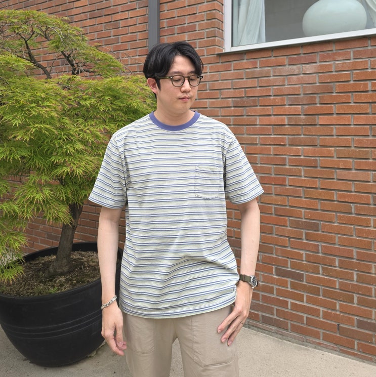 카키스 반팔 보더티 남자 단가라 스트라이프 티셔츠 코디 연희 매장 득템!