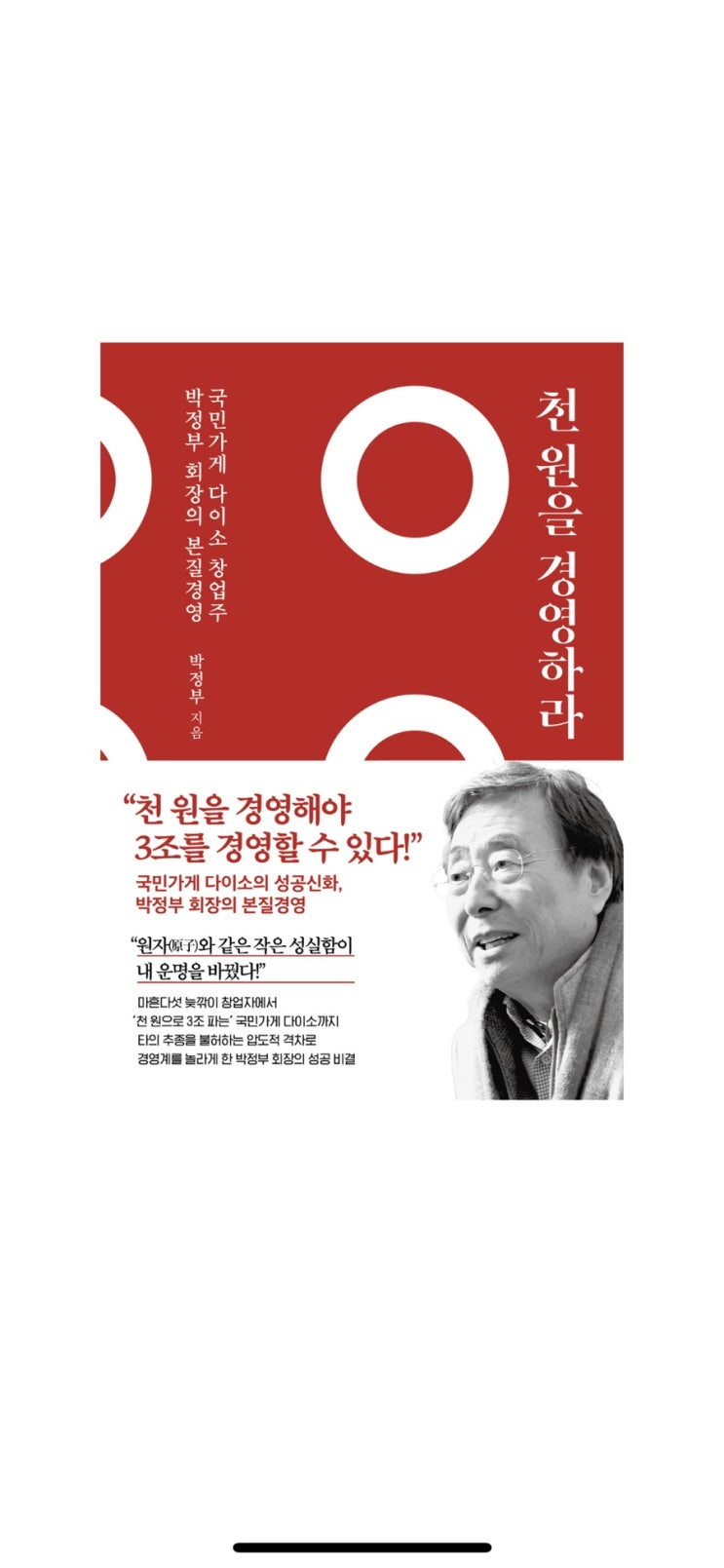 이번주 미션책 아성다이소 박정부 회장님의 책 천원을 경영하라 결론부터 이야기하면, 아주 재미있게 읽었...