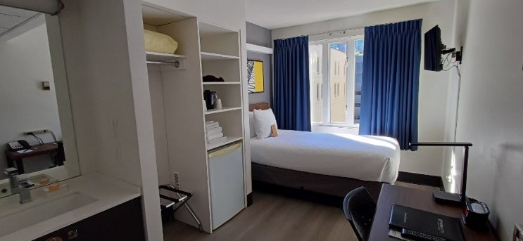 YWCA 호텔 밴쿠버 욕실은 공용으로 쓰지만 객실에 세면대가 있어 크게 불편하진 않다. 나는 이런 숙소...