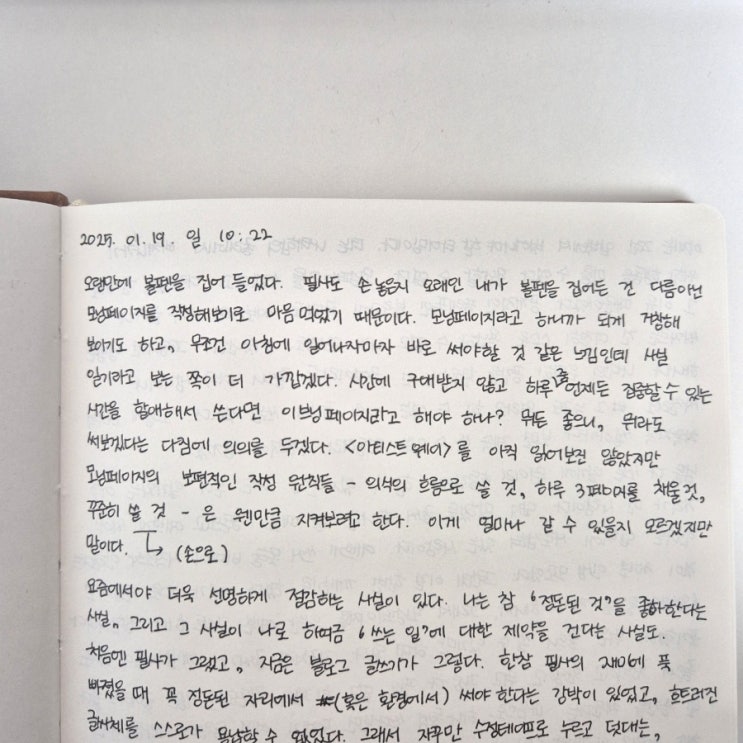 오랜만에 볼펜을 집어 들었다. 필사도 손 놓은지 오래인 내가 볼펜을 집어든 건 다름 아닌 모닝페이지를 작...