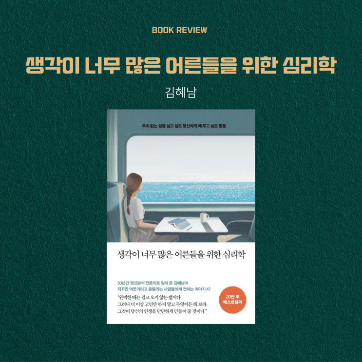 생각이 너무 많은 어른들을 위한 심리학 줄거리 요약과 독후감 김혜남 #바다가떠오르는책 안녕하세요, 도서...