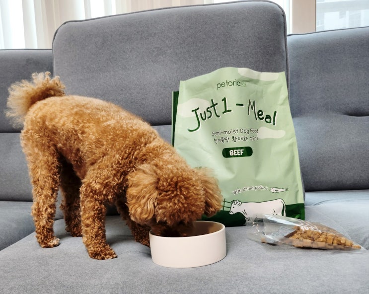기호성 좋은 세토리 한끼뚝딱 강아지 소프트 사료 황태와소고기 푸딩이 급여 후기