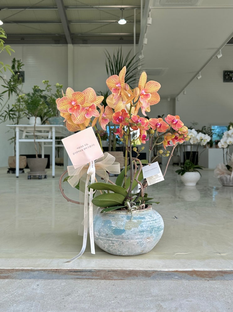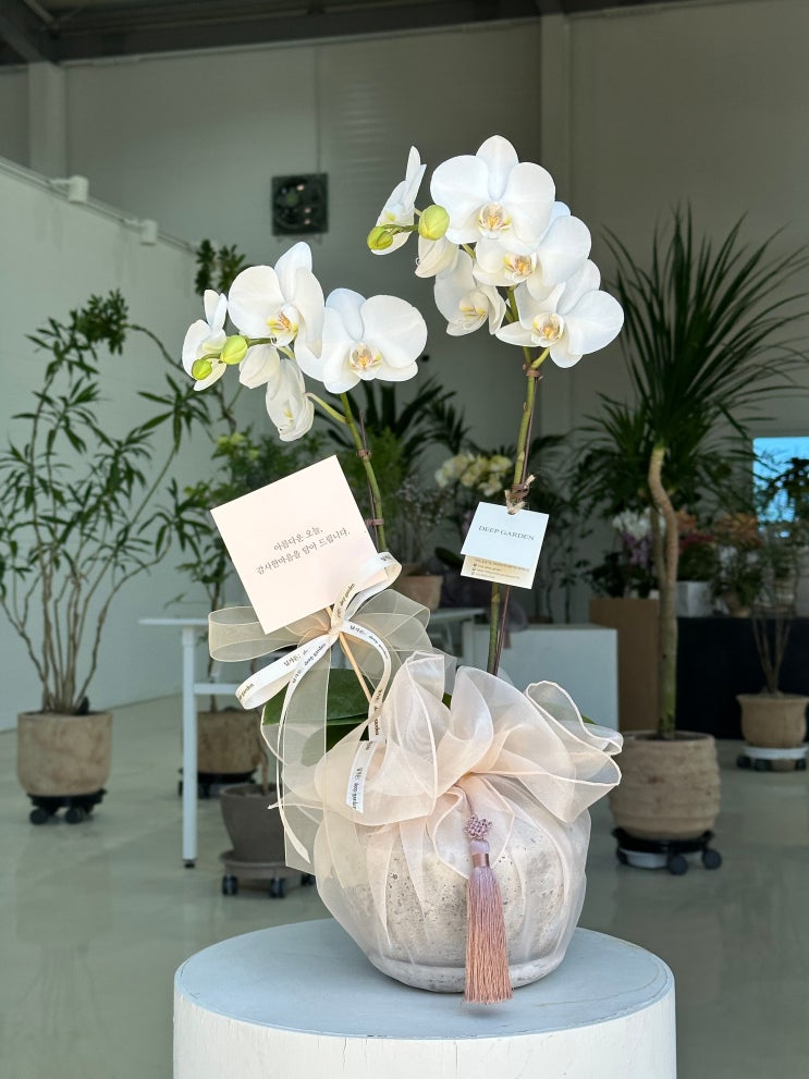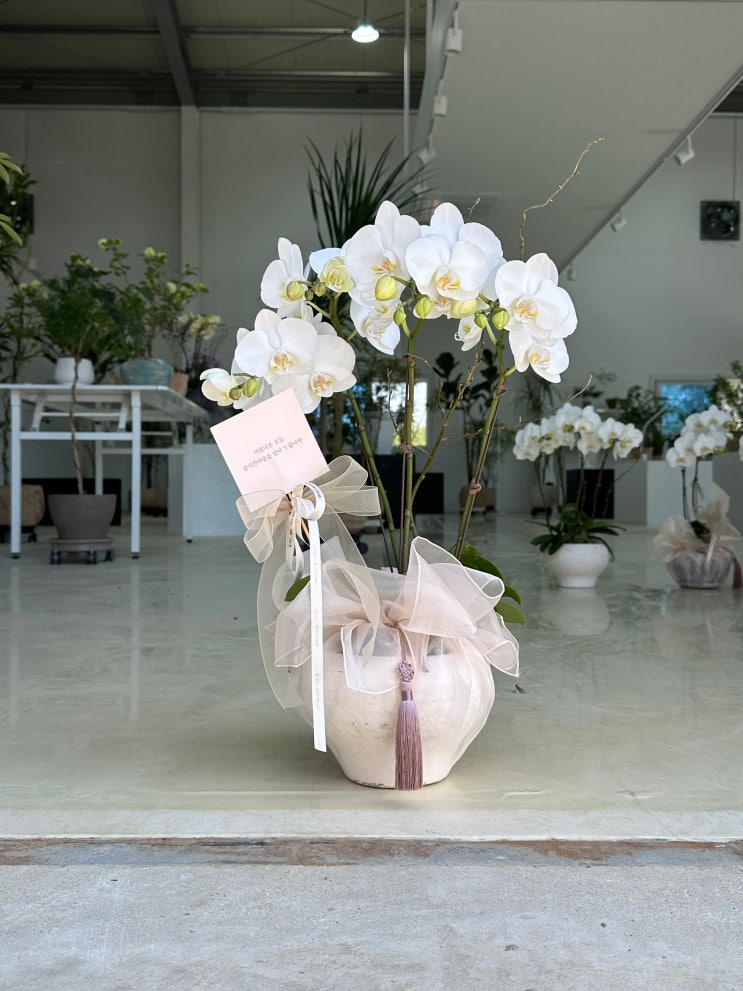 이 상품은 품절입니다. 2번 흰색 서양난 가격 60,000 + 보자기 포장 5,000 +( 종이가방,메세지 카드는 서비...