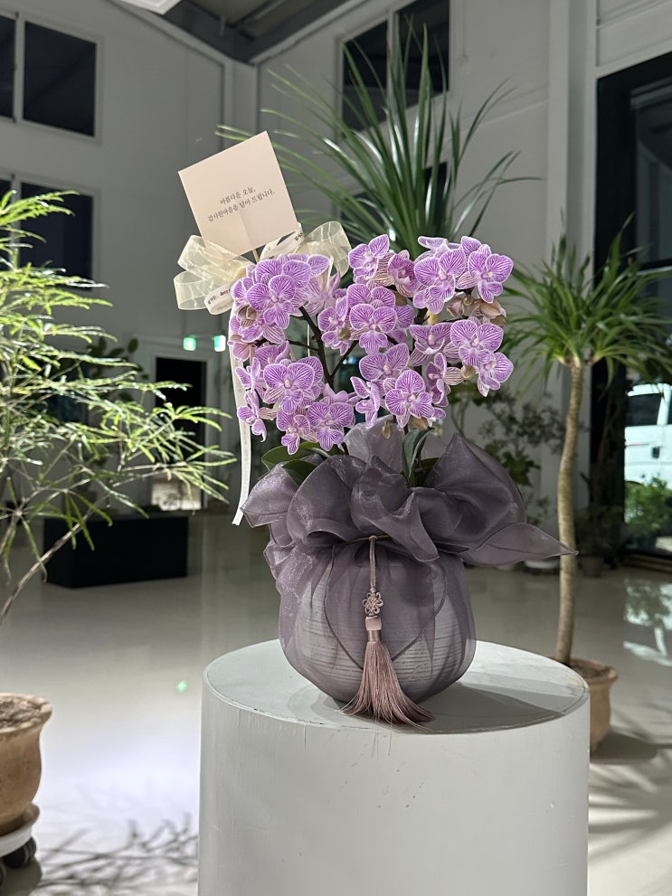 이 상품은 품절입니다. 1번 연보라 서양난 가격 50,000 + 보자기 포장 5,000 +( 종이가방,메세지 카드는 서...