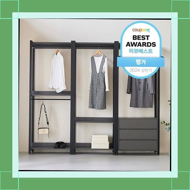 퍼리든 큐브 드레스룸 시스템 행거 2400 1단 + 2단 + 서랍장 방문설치로 완성된 세련된 공간