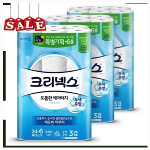 인기있는 유한킴벌리 화장지 크리넥스 에어터치 27m 24+6롤 3팩, 36개 선착순