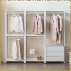 퍼리든 큐브 드레스룸 시스템행거 2400 2단 2단 서랍장 세트 방문설치, 화이트 퍼리든 큐브 드레스룸 시스...