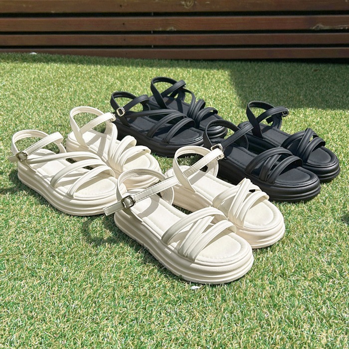 [바닐라슈] 네로츠 2type 슬림 사선라인 X탑 올인원 통굽 스트랩 샌들(4cm) /여름샌들,키높이통굽샌들,여자여름샌들,데일리룩,발편한신발