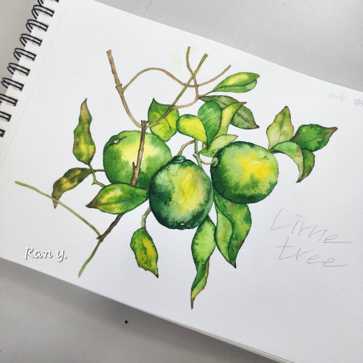 10회차에서 반을 달렸네요. ㅠㅠ #라임나무 #라임나무수채화 #수채화배우기 #그림그리기