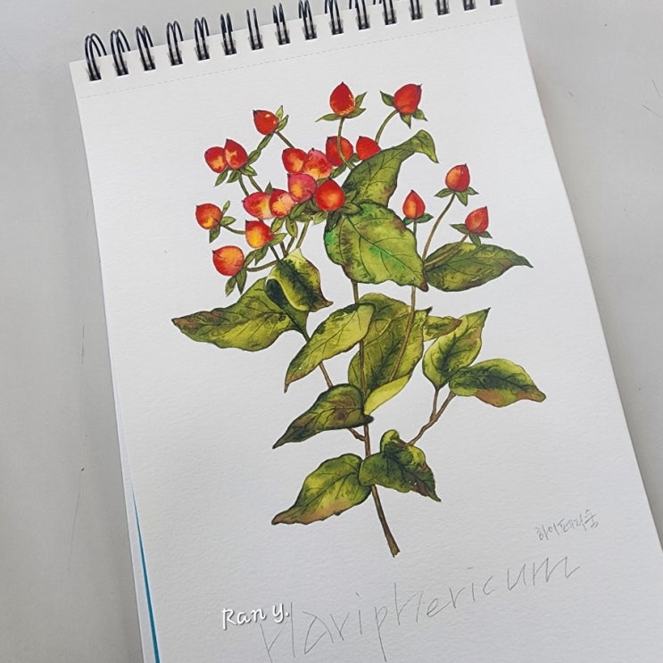 붉은 열매입니다. 꽃봉우리 같기도하구..ㅎ #하이페리쿰 #열매그리기 #수채화배우기 #그림그리기