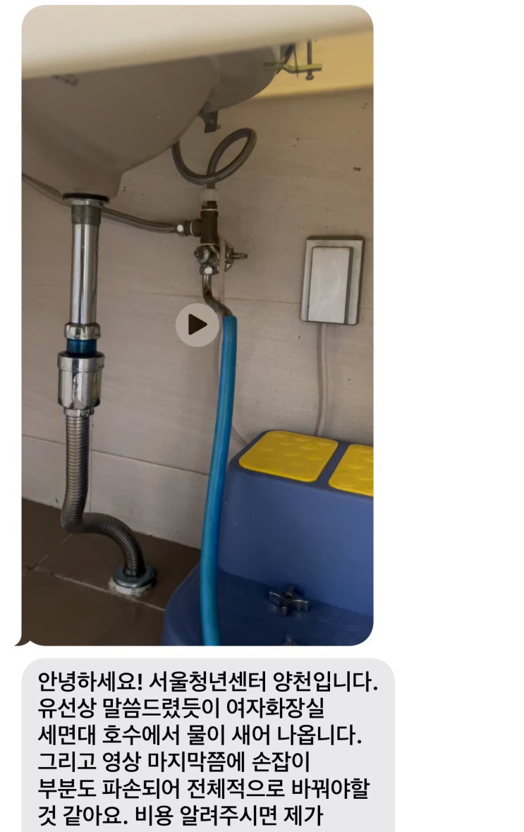 양천구 목동 서울청년센터양천 화장실 세면대누수 고압호스물샘 앵글밸브손잡이 깨짐수리 세면대트랩 아이...