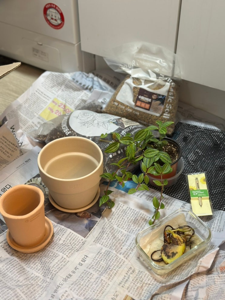 물꽂이 해놓은 관엽식물 있었는데 이제 분갈이를 해줘야 할떄가 온 것 같아서 골든테라 프리미엄 분갈이흙 ...