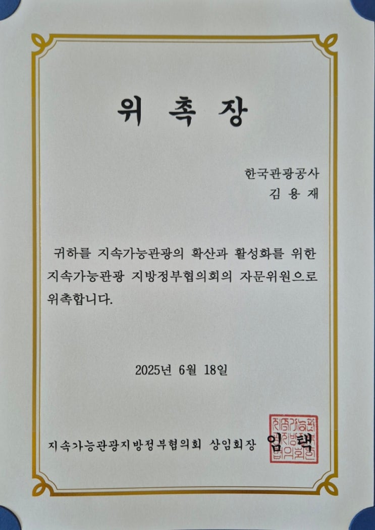 배움과 나눔 지속가능관광 지방정부연합회 자문위원 위촉