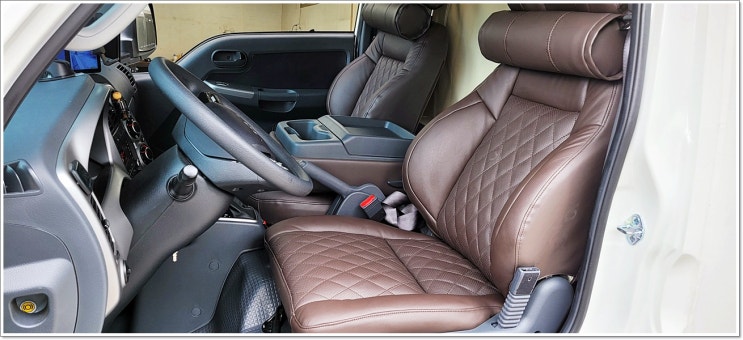 (미래카시트) 대전 봉고 3 LPG 차량에 초코브라운 리무진시트 조수석 열선시트 작업으로 편안하게 운전해 보세요