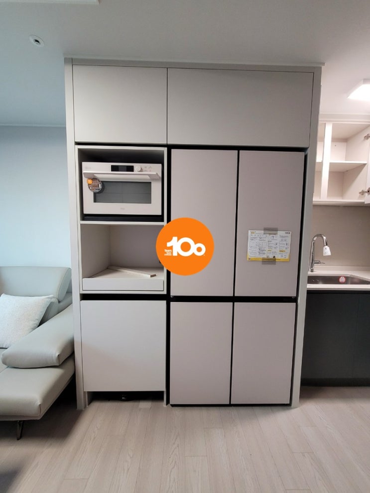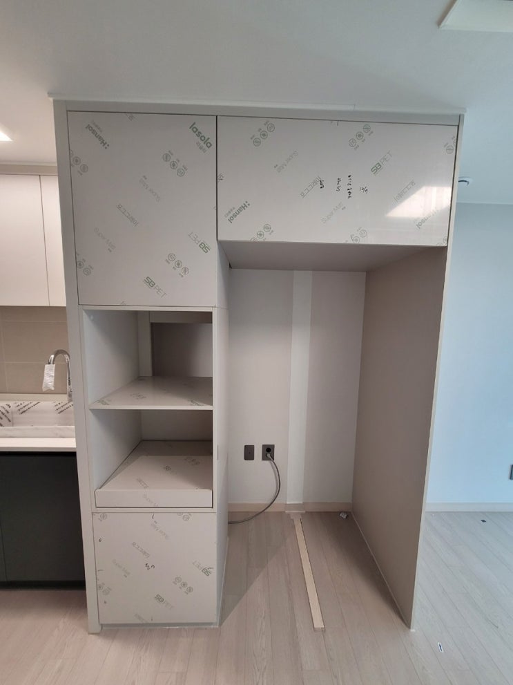안녕하세요. 백년장인 입니다. 금일은 39타입 냉장고장을 시공해 드렸습니다. 퍼인트로 홈바를 선택하셨고 ...