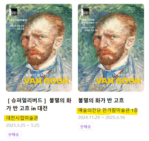 여기서 언급했던 첫 번째 나들이는 바로 대전 시립 미술관 빈센트 반 고흐 전시를 다녀왔습니다. 3월 25일...