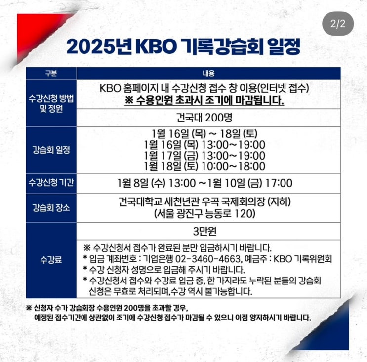 2025 KBO 기록강습회 일정 및 수강신청 성공 팁