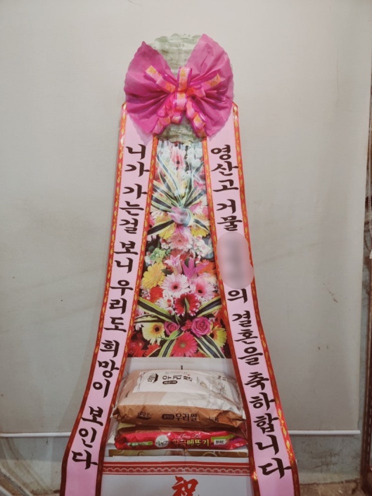 결혼식쌀화환 영도 목장원으로 배송해드렸어요