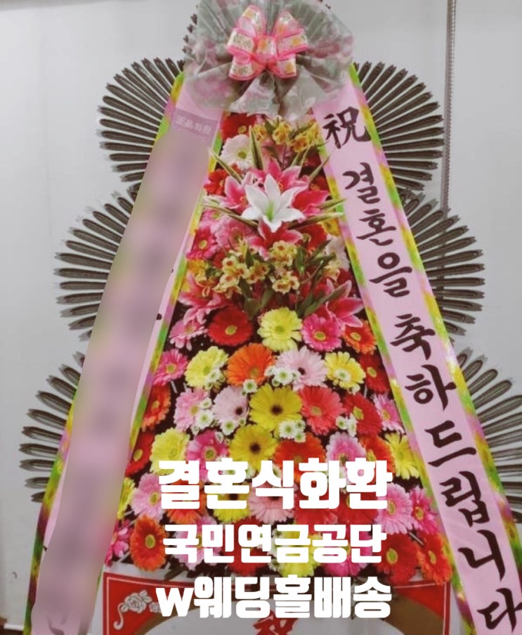 결혼식화환 연제구 국민연금공단 W웨딩홀로 배송해드렸습니다. 백년가약을 맺은 신혼부부의 앞날을 축복합...