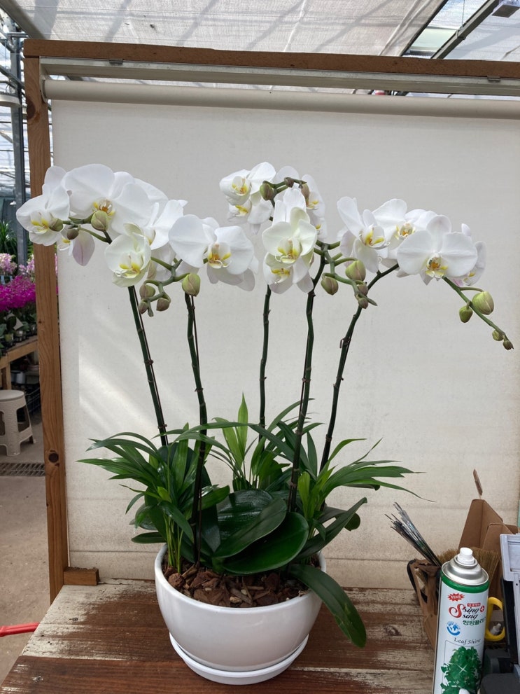 안녕하세요. 마이부케플라워입니다. 개원축하화분 화이트호접란 고급스러운 화기에 식재해서 강남구 압구정...
