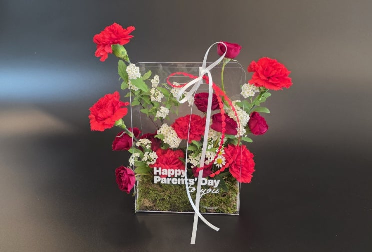 부평 어버이날 꽃집 플라워바이봄 아크릴백 카네이션