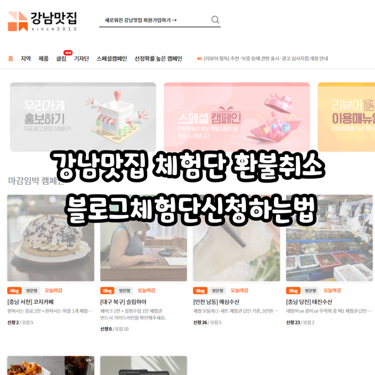 강남맛집 체험단 환불취소 블로그체험단신청하는법