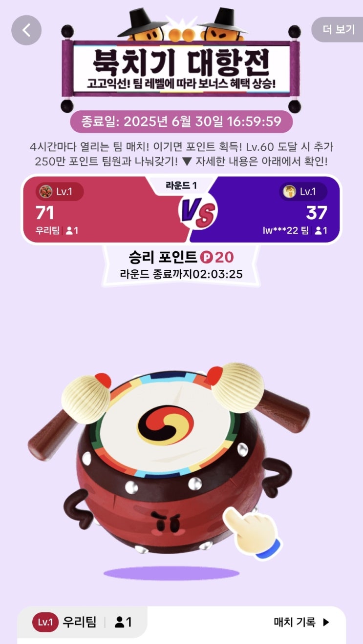 2025년 6월 20일(금) 북치기 대항전 초대합니다 저희팀 링크에요 https://lite.tiktok.com/t/ZSknMJ9L...
