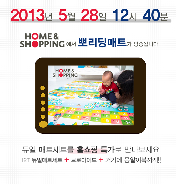 드디어 첨소리 뽀리딩매트가 홈쇼핑에서 판매한답니다~ 다음주 5월 28일(화요일) 홈앤쇼핑 12시 40분!!! 제...