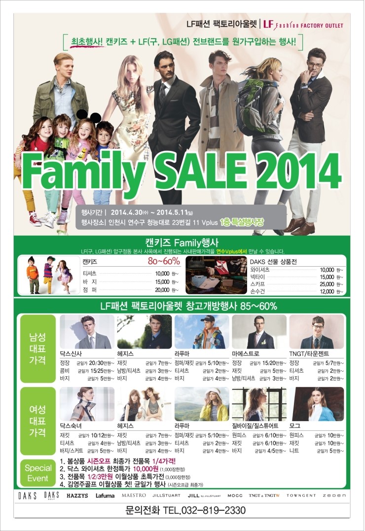 인천브이플러스 연수점 최초행사 캔키즈/lf팩토리아울렛 패밀리세일 특가물량 추가입고! 5월 11일까지 3일 ...