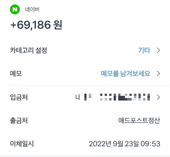 애드포스트 수익금 반갑습니다, 엉허입니다^^ 오늘은 생각지도 않았는데 애드포스트 수익금이 들어와서 신...
