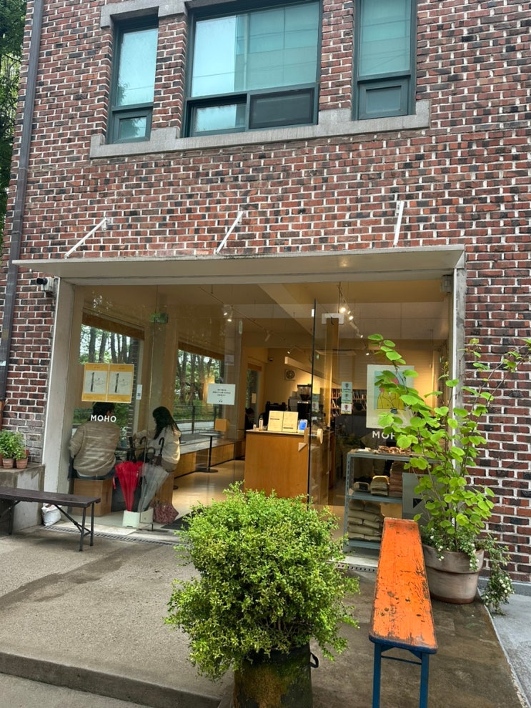 양재천에 위치한 카페모호 아이스라떼 맛집이다! 양재천 앞에 있는 빨간 벽돌 건물의 1층에 있다 건물 옆에...