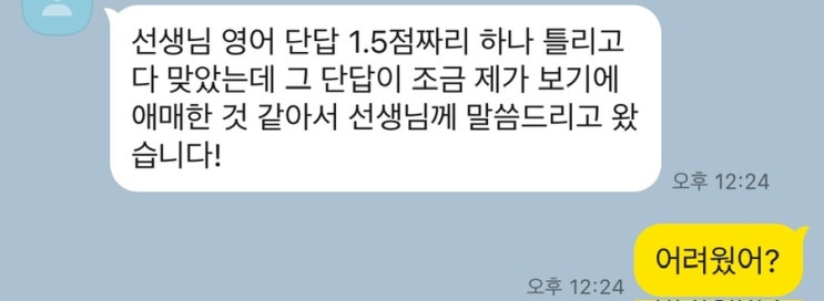 오늘 대전외고 1학년 공통영어 결과 문자가 왔습니다~ 원래 우수한 학생이어서 이번에도 나쁘지 않은 결과...