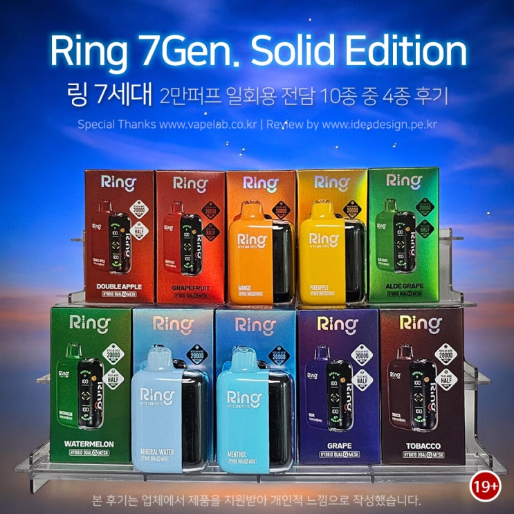 링 7세대(Ring 7Gen. Solid Edition) 2만퍼프 일회용 전담 10종 중 4종 후기