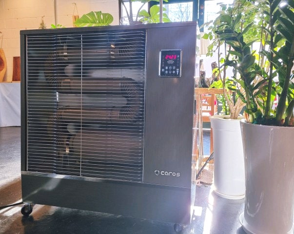 매장 출입구 또는 홀 구석에 놓고 사용하기 좋은 식당용전기온풍기 입니다 난방면적은 15평으로 나왔지만 ...