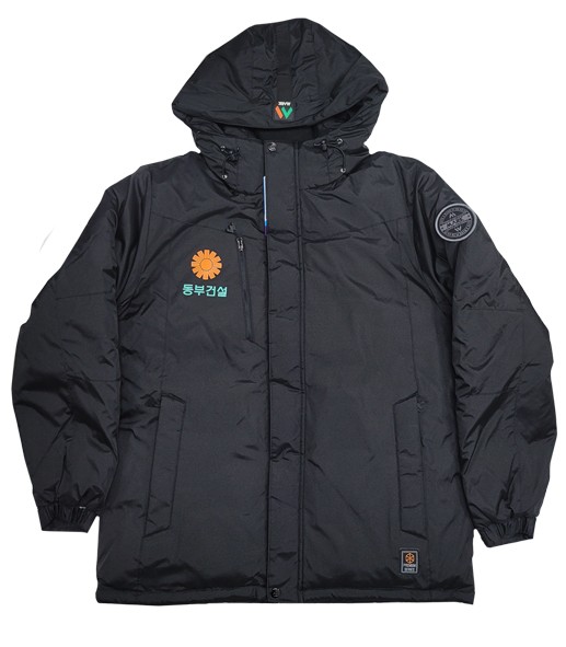 마커 프리미엄 겨울 회사 단체복 웰론 단체 패딩 점퍼 SHMK3011~3014 제품에 고급실사(DTF) 인쇄 방식으로 사명과 로고를 인쇄한 단체복 주문 제작 사례입니다.