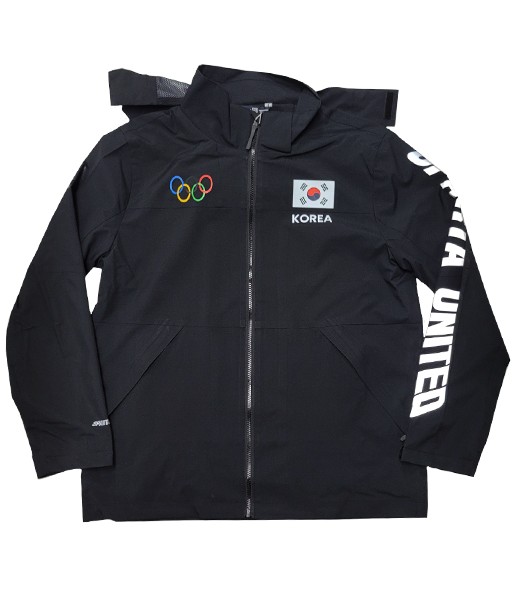 MA-012 단체 후드 배색 고탄력 필름 자켓 점퍼(바람막이)에 DTF 고급실사, 반사 인쇄 방식으로 로고를 인쇄한 단체복 단체바람막이 주문 제작 사례입니다.