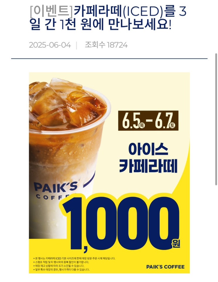 길을 걷다 발견한 빽다방 할인 토요일까지 아이스 카페라떼 천원이 구매가능합니다 빽다방 할인 더본코리아...