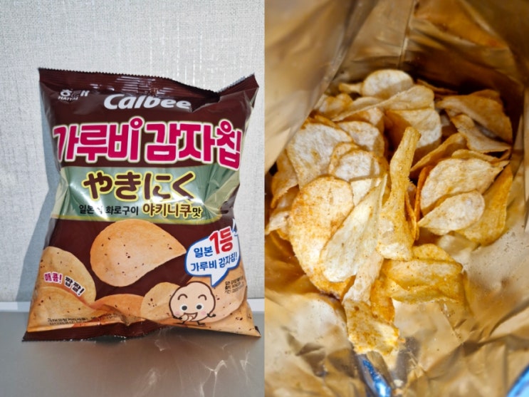 * 가루비 갑자칩 (야키니쿠맛 96g) : 미세한 쟈키쟈키맛도 나면서 베이컨과자 + 스윙칩 과자에 양념맛이 섞...