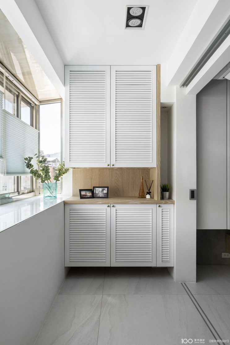 작은집일수록 수납장 디자인, 수납공간은 중요합니다. 베란다 수납장 공간화이트 루버 도어를 적용한 수납...