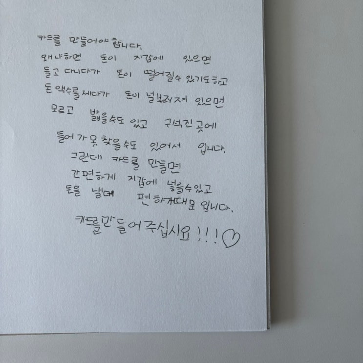 초3, 체크카드를 만들어 주세요