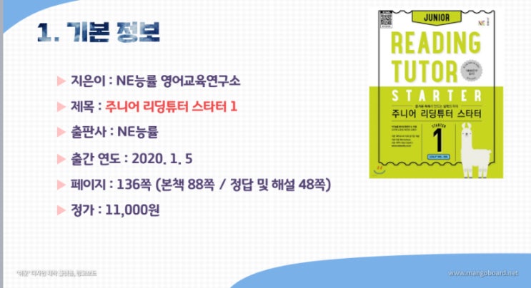 주니어 리딩튜터 스타터 1권 / 독해 교재 입문용 추천 / 리딩튜터 공부 방법 / 추천 대상 및 난이도