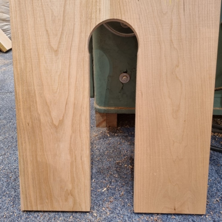 쉘터협탁 제작 4회차 측판에 라운드가 들어간 홈을 파는 디자인을 했다. 트리머에 원형 홈파기 지그를 끼워...