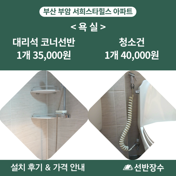 부산 부암서희스타힐스 아파트 욕실 대리석 코너선반 & 청소건 설치 후기|선반장수