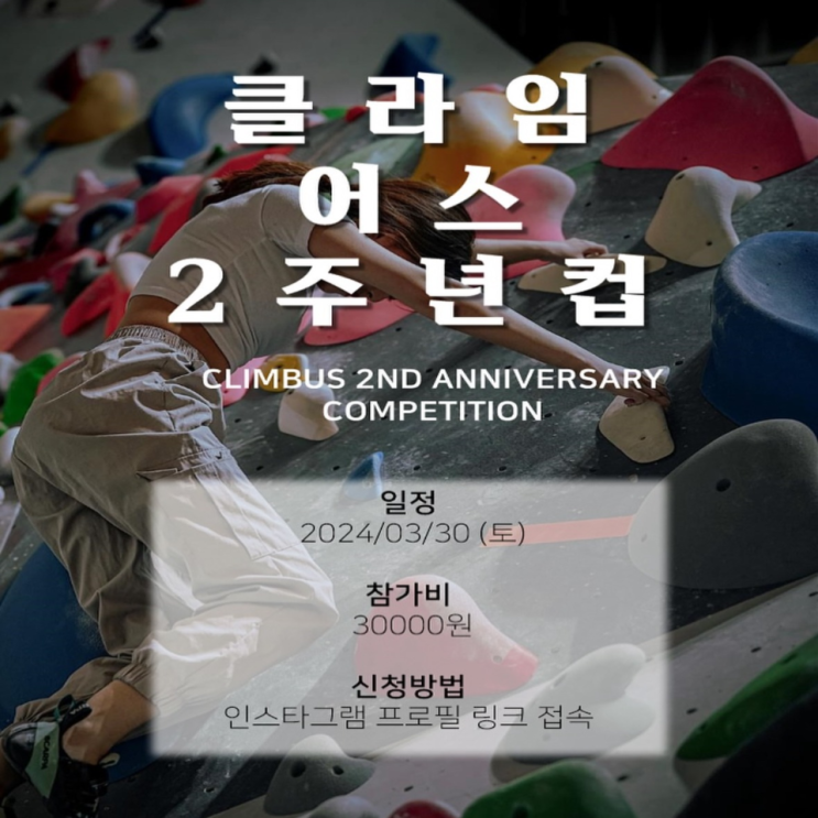 클라임어스 제 2회 어스컵 볼더링대회 24년 3월 30일 메가프라자 6,7층 기계식 주차장(주차장 협소) 참가비...