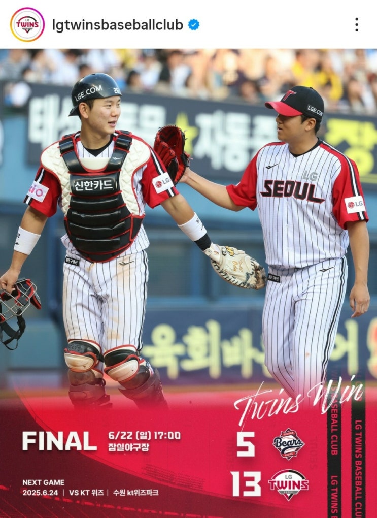 [LG 트윈스] 두산 베어스와의 주말 시리즈 두번째 경기 선발 라인업 (2025.6.22)